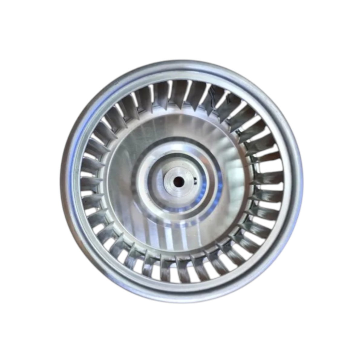 Turbina de aluminio.Medidas:Diámetro 134 mmAlto: 75mmDiam. Eje 8 mmGiro a elección con el botón de variantes